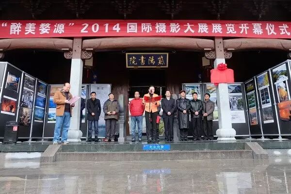婺源县人大副主任詹显华主持“醉美婺源”2014国际摄影大展展览开幕仪式。婺源县人民政府代县长吴曙致辞:“在婺源,春可赏五色芳菲、夏可探清幽山水、秋可观漫山红叶、冬可享古韵民俗;在婺源,梯田花海、石城红叶、篁岭晒秋、乡野驿道、徽剧傩舞、古巷廊桥点缀着这片神奇的土地,行走之间,处处是大地的文章、文化的坐标,乡愁的记忆,构成了一幅幅天然而成的水墨山水画卷……”
