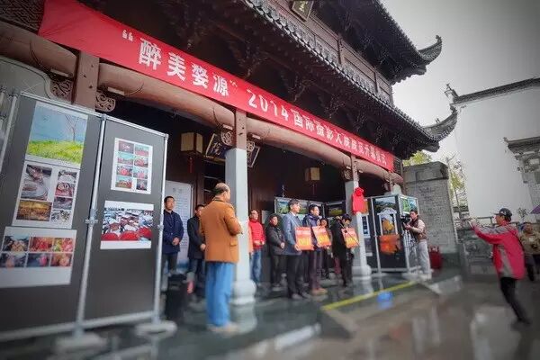 南烟雨中,紫阳书院前,“醉美婺源”2014国际摄影大展展览开幕了。