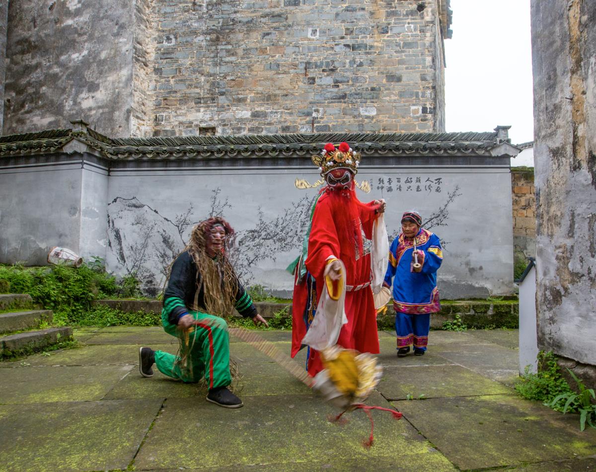 "南派跳钟馗",以古徽州歙县地区最为突出,又称"嬉钟馗"。盛行于明万历年间,距今已有400多年的历史。歙县跳钟馗寓意消除五毒,四季平安,以求驱邪降福,保佑村民平安。体现了民众崇尚钟馗刚正不阿、除害降福的美好愿望。