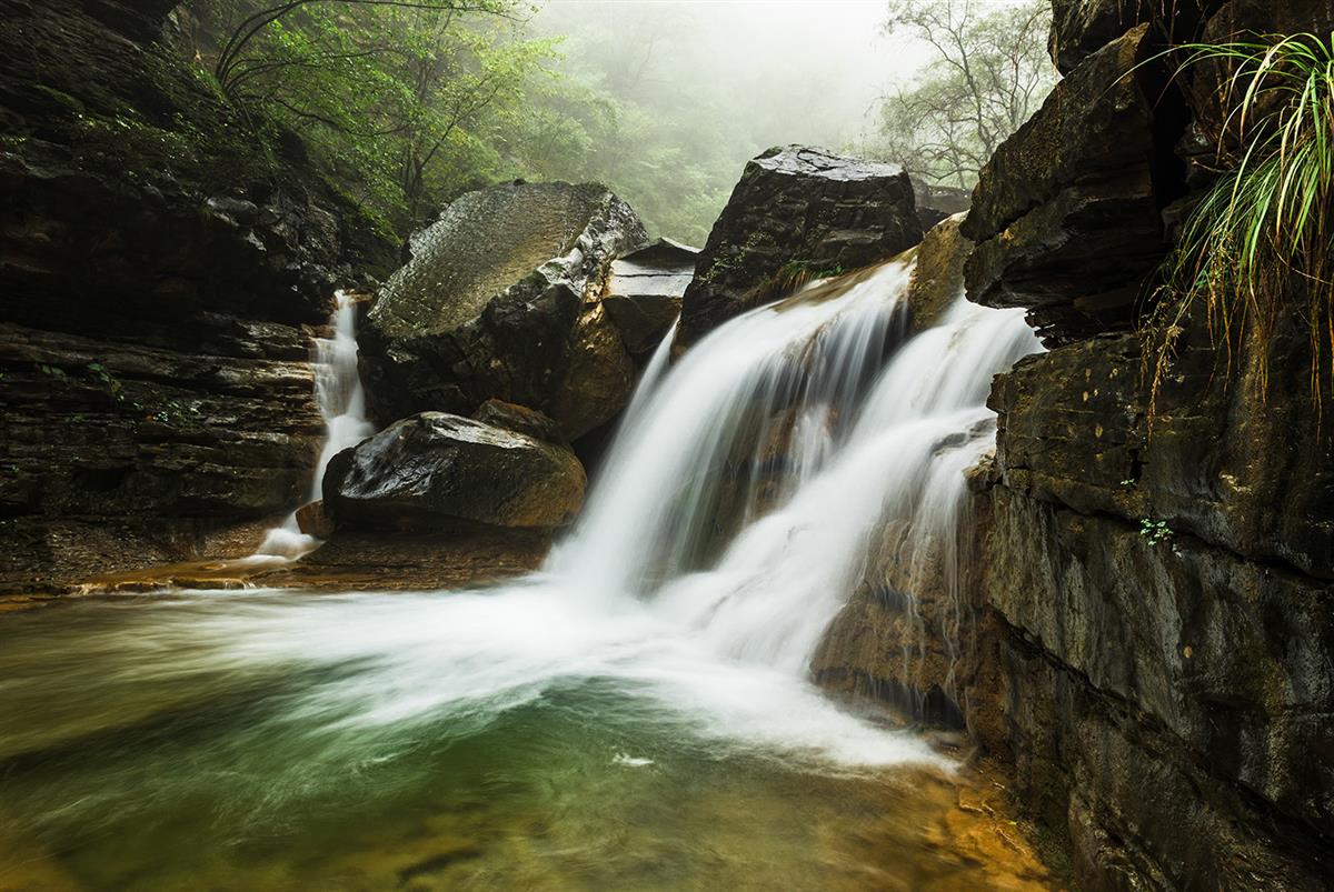 走进河南省修武县云台山潭瀑峡,满目苍翠、溪流潺潺,溪流在峡谷中穿行并汇聚成一个个水潭、一汪汪碧水,给峡谷带来了生机和灵动。