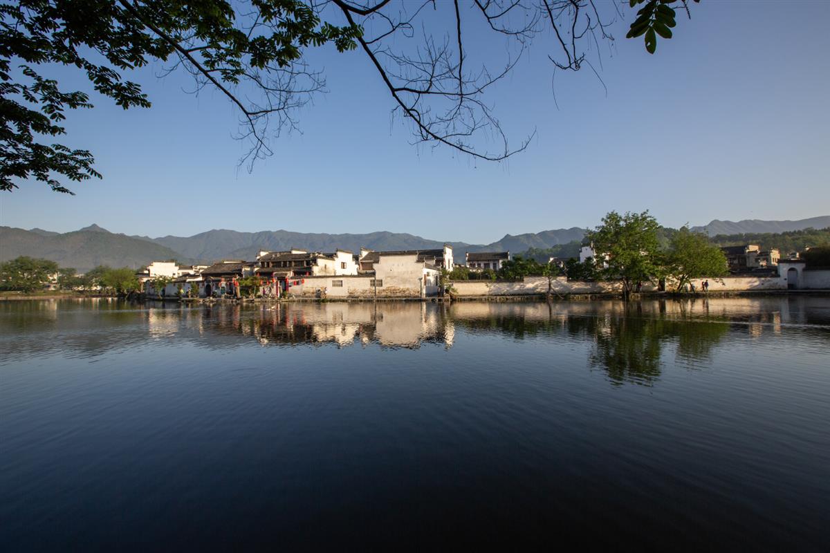 古树含烟映古塘,白墙黛瓦入清光,远山倒影藏诗韵,一入徽村忘归乡。