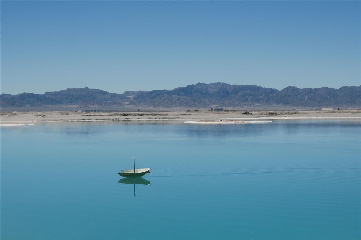 大柴旦翡翠湖的青蓝湖面似被揉碎的宝石,澄澈得能映出远山与晴空的轮廓。荒漠戈壁作底、黛色山脉为屏,孤舟载着一把伞轻浮波心,像天地间偶然遗落的闲意,把空旷里的静谧都浸在了这汪碧色里。