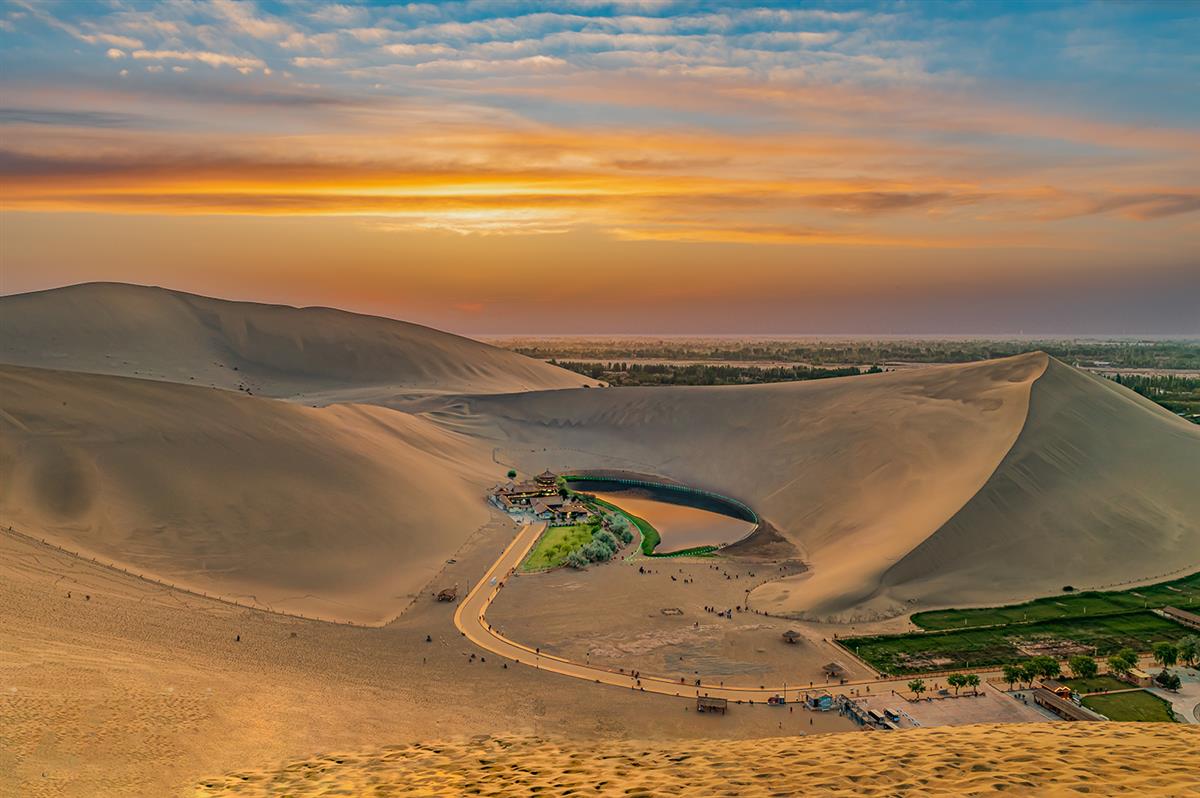 晚霞辉映月牙泉