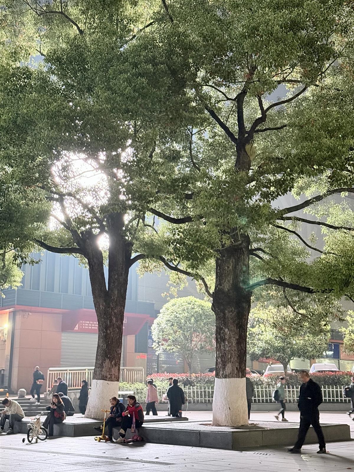 那一天,路过傍晚的步行街,吃过晚饭的人们陆续出来遛弯,树下是陪伴孩子的家长们,有一种市井生活的松弛感,忍不住拍了下来。
