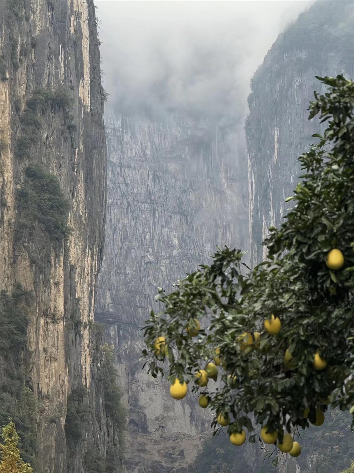 千仞绝壁震撼人心,硕果累累撞进夔门,山与果在此温柔相逢。