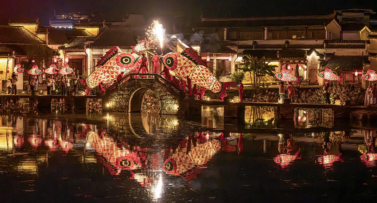 呈坎鱼灯是徽州地区传承千年的非遗民俗,融合了信仰、艺术与社区文化,是徽州民间生活美学的生动载体,鱼灯晚会不仅是一种视觉盛宴,也展示了当地人民的团结协作精神。
