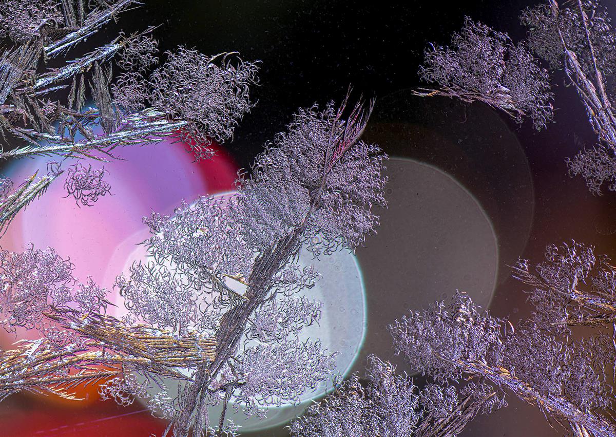 冰窗花是冬季室内水蒸气遇冷凝结在玻璃上形成的冰晶图案,千姿百态,有的如树枝,有的如羽毛,美轮美奂。