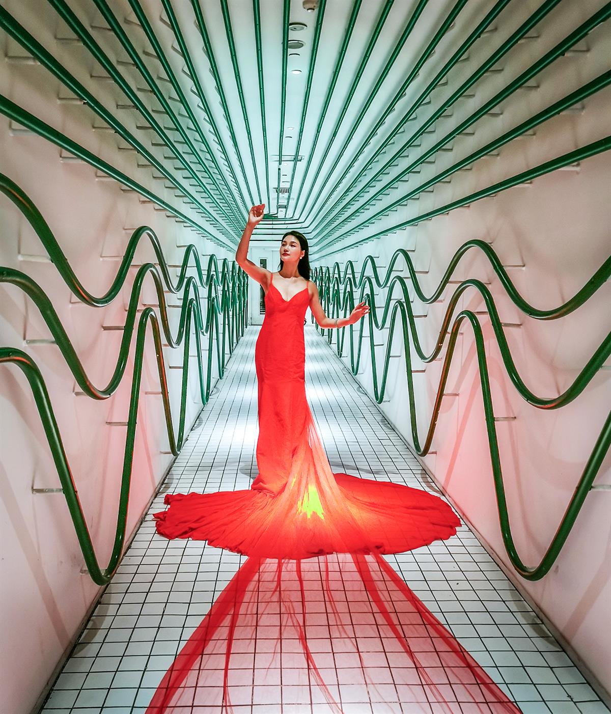 廊韵映红裙