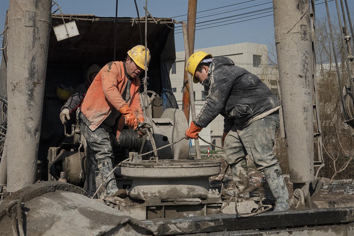 2026年1月7日,在江苏镇江姚桥镇解放桥西南道口,乡野间的机械轰鸣中,两名施工人员以双手为犁,在土地上钻孔灌注桩施工,浇筑建筑的基石,平凡的劳作里,藏着乡村发展的力量。