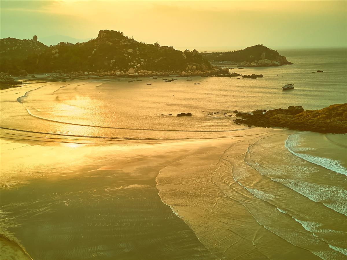 清晨,层层海浪在朝霞的衬托下,展现出美丽的图案,不禁让人感叹大自然的杰作。