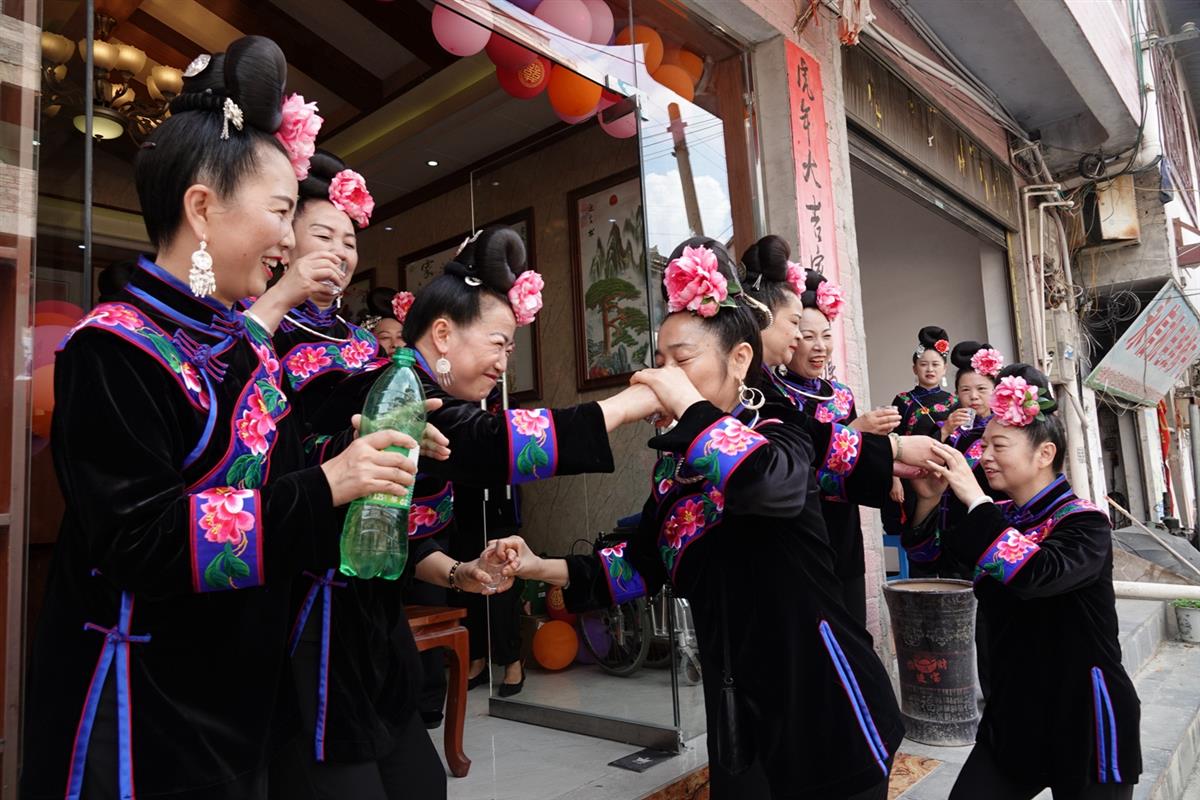 2024年8月10日贵州省雷山县丹江镇苗族人家办喜事,八方宾客前来祝贺。按照苗家习俗,进门要喝栏门酒。苗族人的热情好客在此得到完美体现。