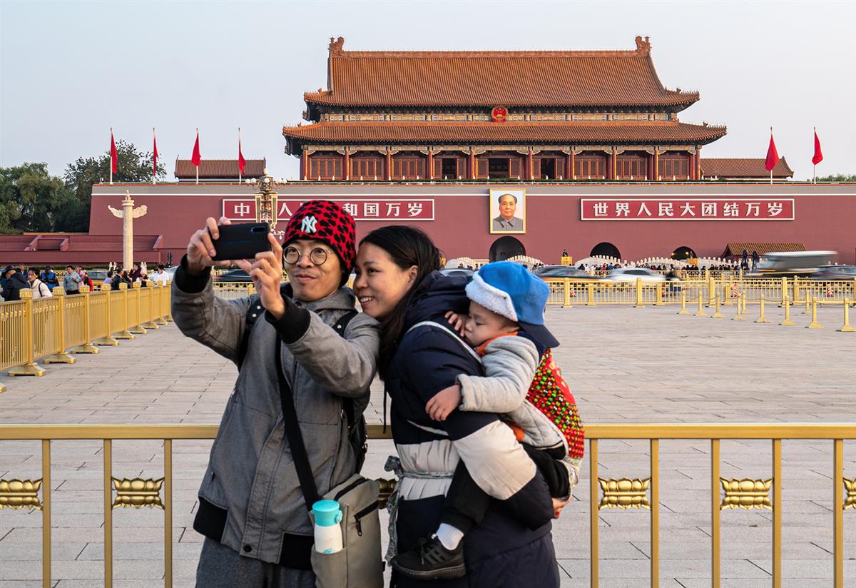 天安门 城楼前,一家人用镜头定格家国同框的幸福瞬间