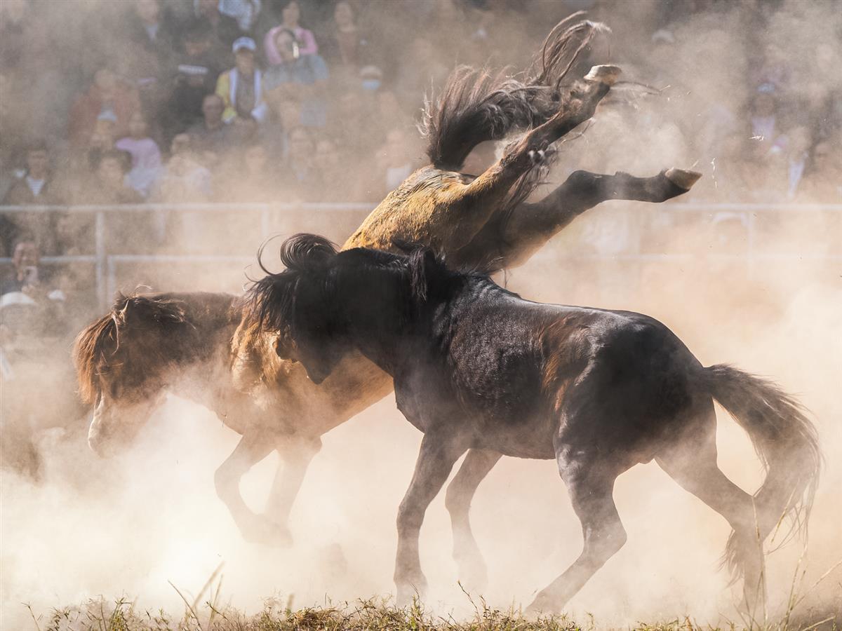 广西融水苗族自治县,“斗马节”是苗族人特有的非遗传统节目,每年都会举行一次盛大的斗马节活动,斗马节中每场斗马比赛都会精彩纷呈,令人激动令人振奋不已。