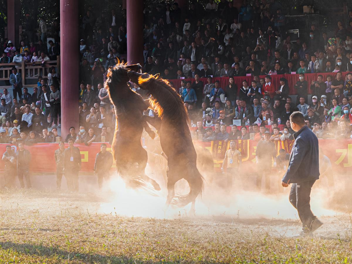 广西融水苗族自治县,“斗马节”是苗族人特有的非遗传统节目,每年都会举行一次盛大的斗马节活动,斗马节中每场斗马比赛都会精彩纷呈,令人激动令人振奋不已。