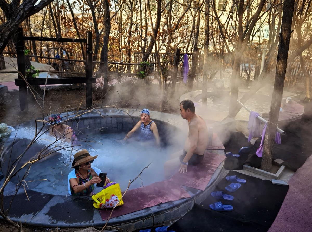 2025年12月21日冬至拍于大连瓦房店的一个室外泡温泉(此时气温零下4度)画面。