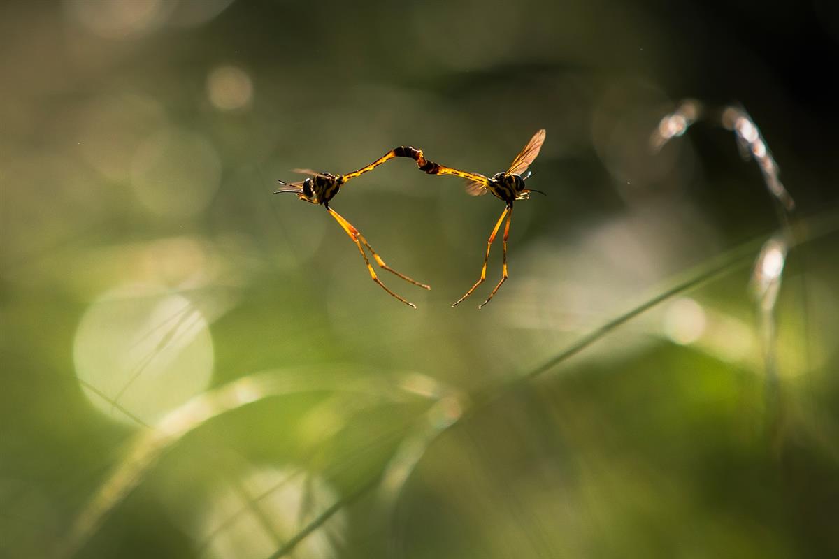 绿意朦胧的自然背景中,两只姬蜂肢体交错完成交配,将昆虫世界的浪漫爱恋,定格成“绿动自然”的温情画面。