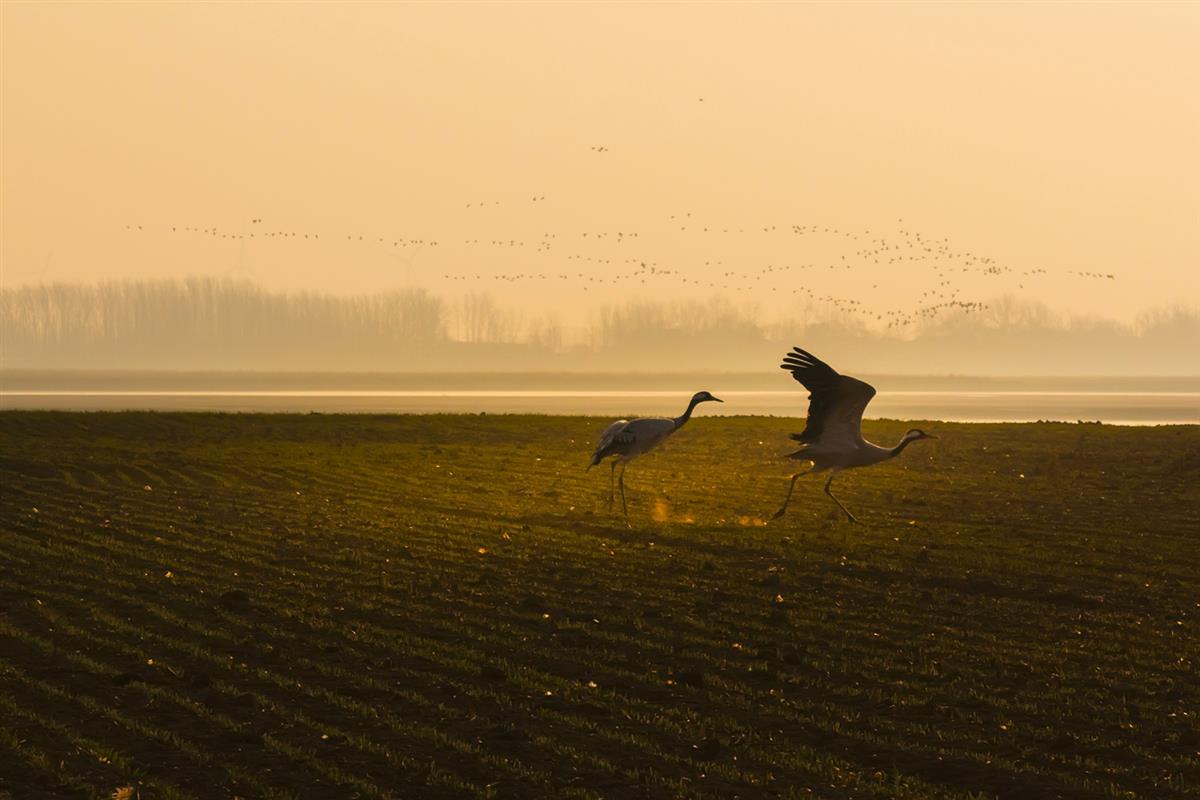 绿野鹤影,黄河湿地的生机
