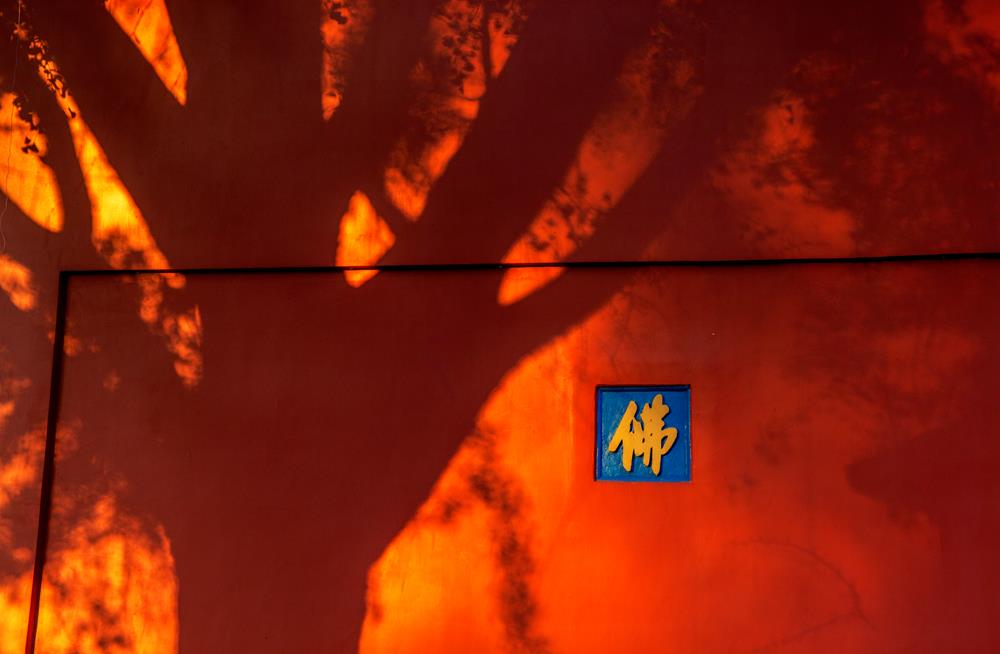 摄于江苏省南京市栖霞寺,树的光影照在寺庙墙上,形成了一种难以言状的庄严感和肃穆感。