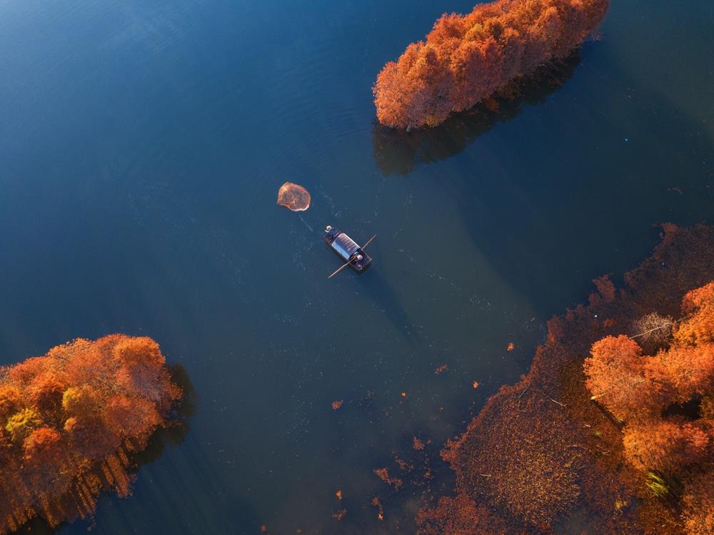 摄于江苏省淮安市盱眙天泉湖,清晨渔民在湖上撒网捕鱼。