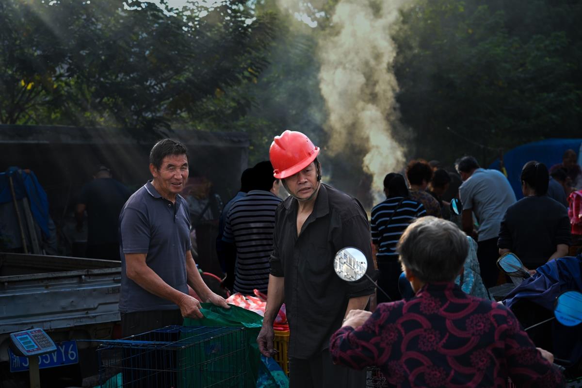 玉环市楚门镇露天家禽市场,家禽类是当地居民餐桌上和进补的重要食物,每天早晨这里的买卖交易特别旺。