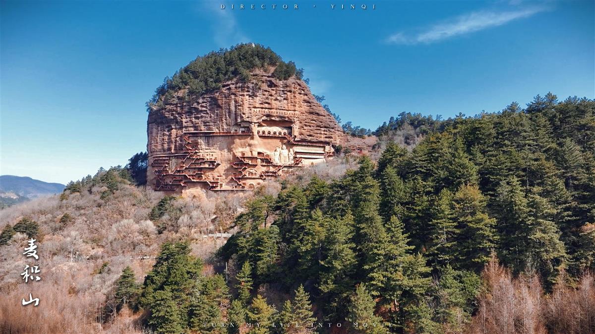 初春时期麦积山千年佛龛的极致风光,吹过一千六百年的时光长廊,麦积山佛像在崖壁上静默成诗
