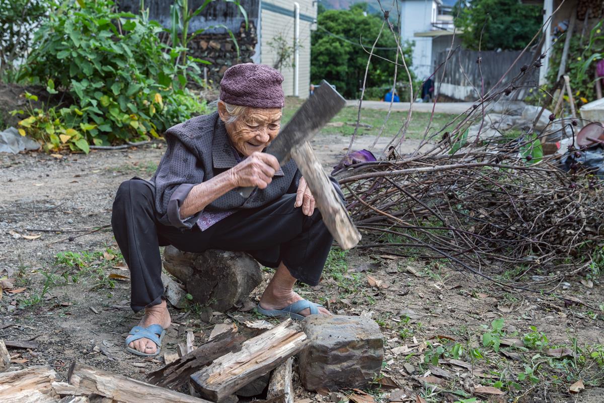 在2025年重阳节之际,由广西桂林荔浦县政府组织了,有相关领导和医护人员参加的慰问团队,到各百岁老人家中看望百岁老人的活动时,拍摄到老人在劳作的情景。