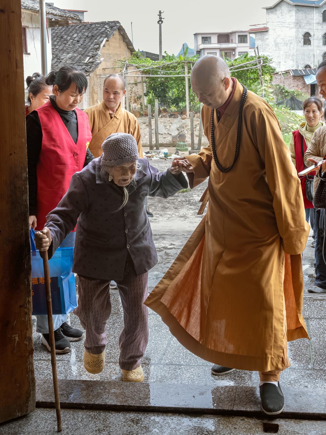 在2025年重阳节之际,由广西桂林荔浦县政府组织了,有相关领导和医护人员参加的慰问团队,到各百岁老人家中看望百岁老人的活动的场面。