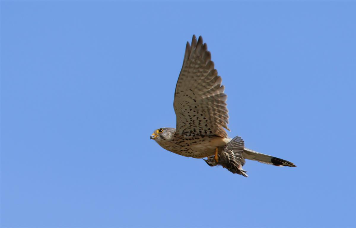 一只猛禽抓住一只小鸟从空中飞过,这就是自然界的生存法则