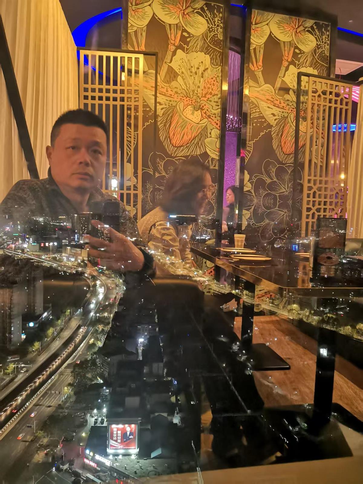 透过旋转餐厅玻璃俯瞰风景