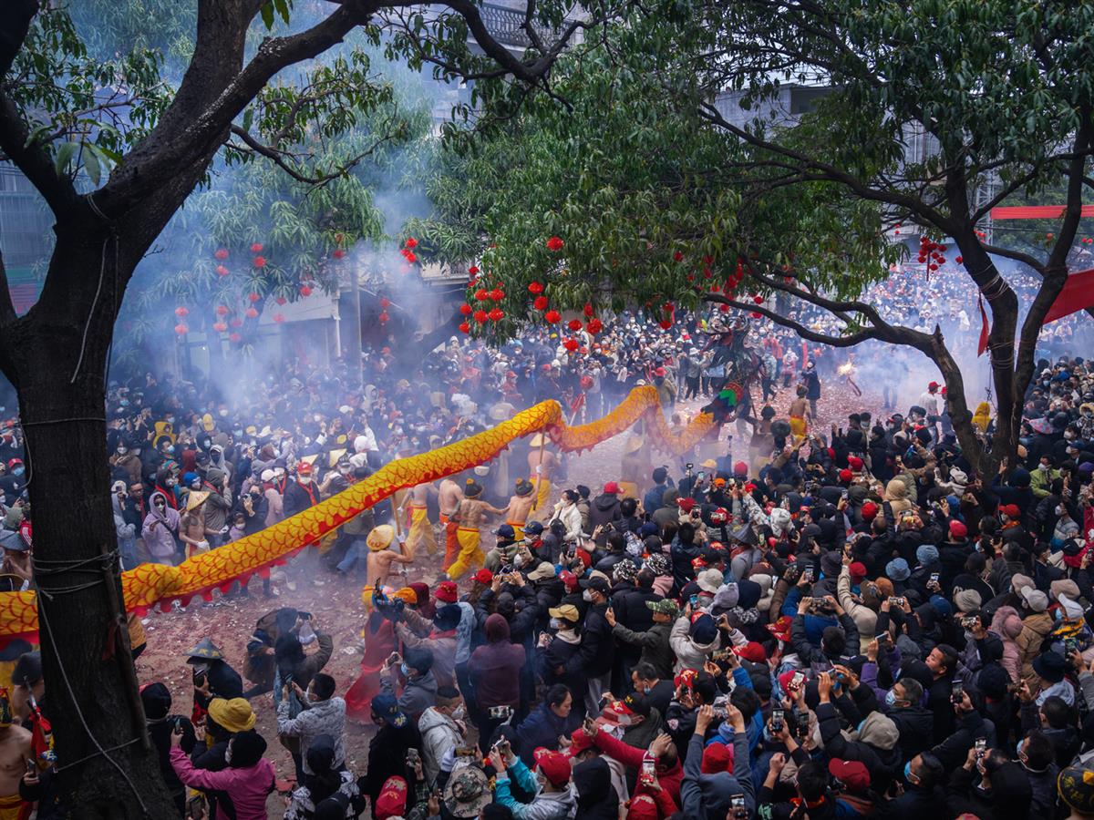 广西宾阳每年都会在春节期间,举行一次有着悠久历史的炮龙节。每当这一天到来,全城的老百姓会倾城出动和慕名前来的宾客,涌向街头手持鞭炮炸龙去。