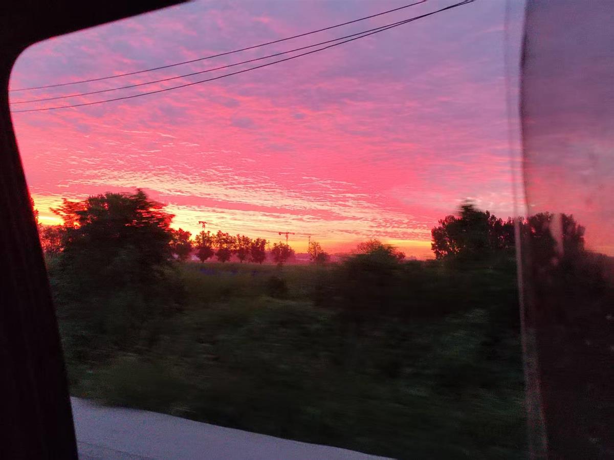 那天刚好是我去上班的时间,看见窗外的太阳正缓缓升起照亮了整片天空,像极了少女羞红的脸,