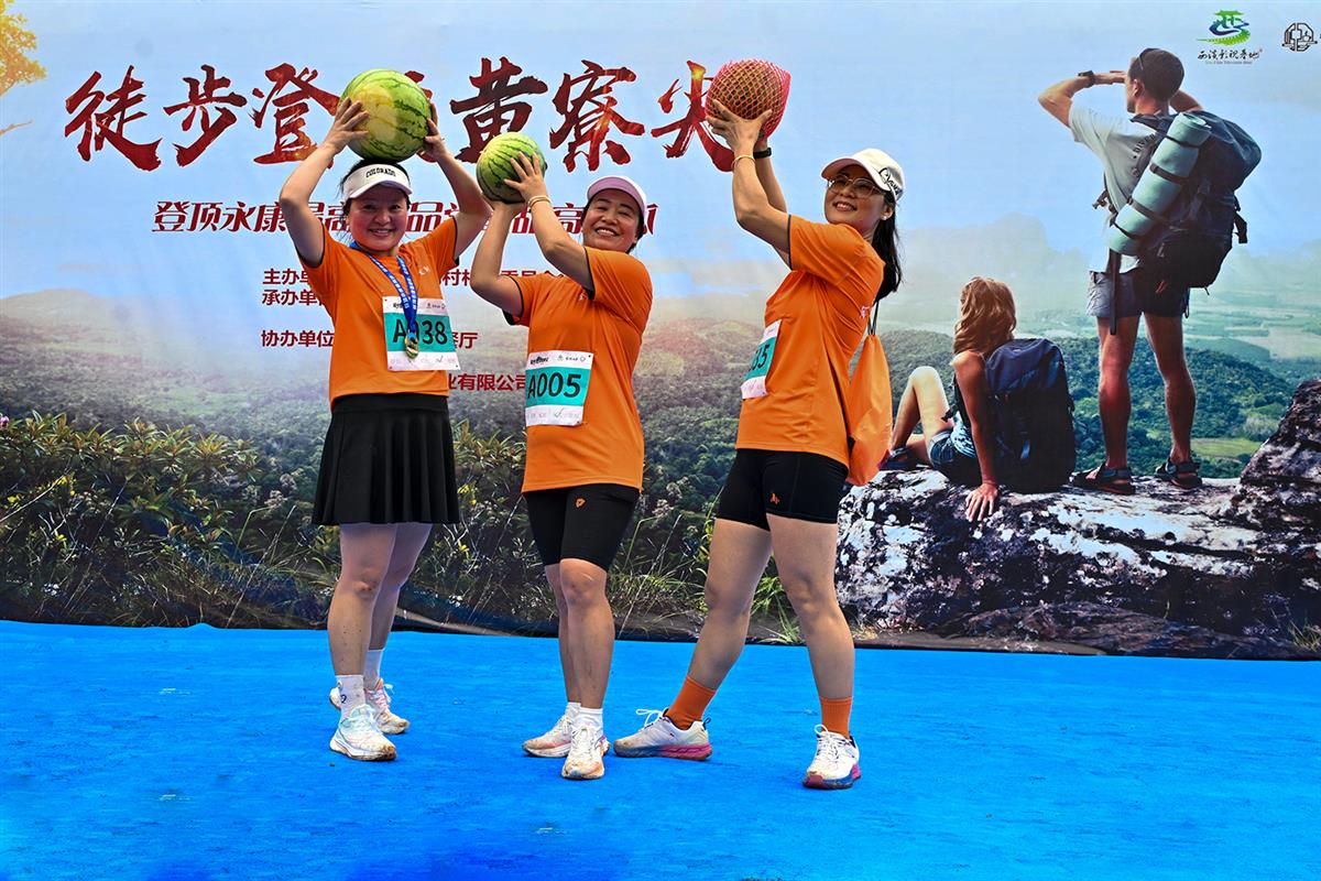 2025.7.20浙江省永康市,夏日的永康黄寮尖,山野间漾着瓜香与欢笑。一场融合了徒步登山与乡村西瓜节的趣味赛事在此开启,参与者们沿着山路奔跑竞逐,用脚步丈量山野风光,以活力比拼赢取清甜西瓜。橙衣选手们高举西瓜欢呼的瞬间,成了黄寮尖最鲜活的画面。