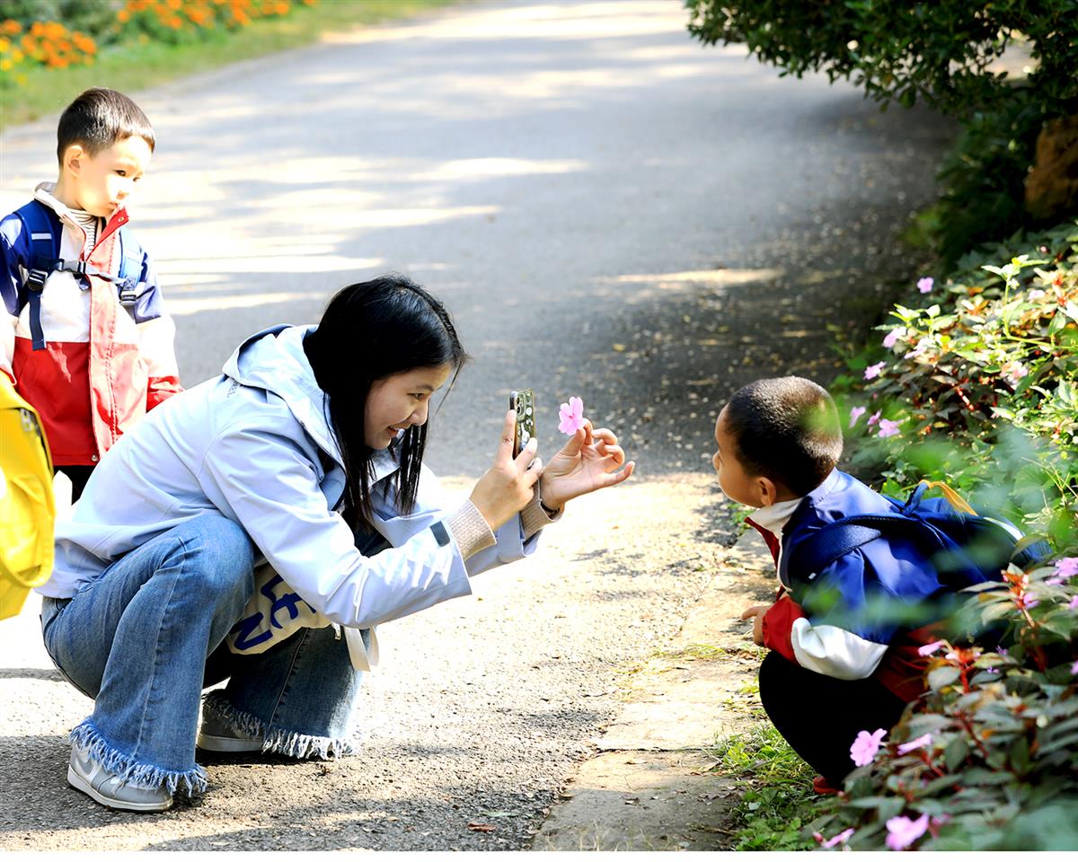 2025年1月13日,摄于南京中山植物园(南园)。秋天,色彩斑澜的中山植物园迎来了幼儿园小朋友的秋游,老师为每一个小朋友拍照留影。