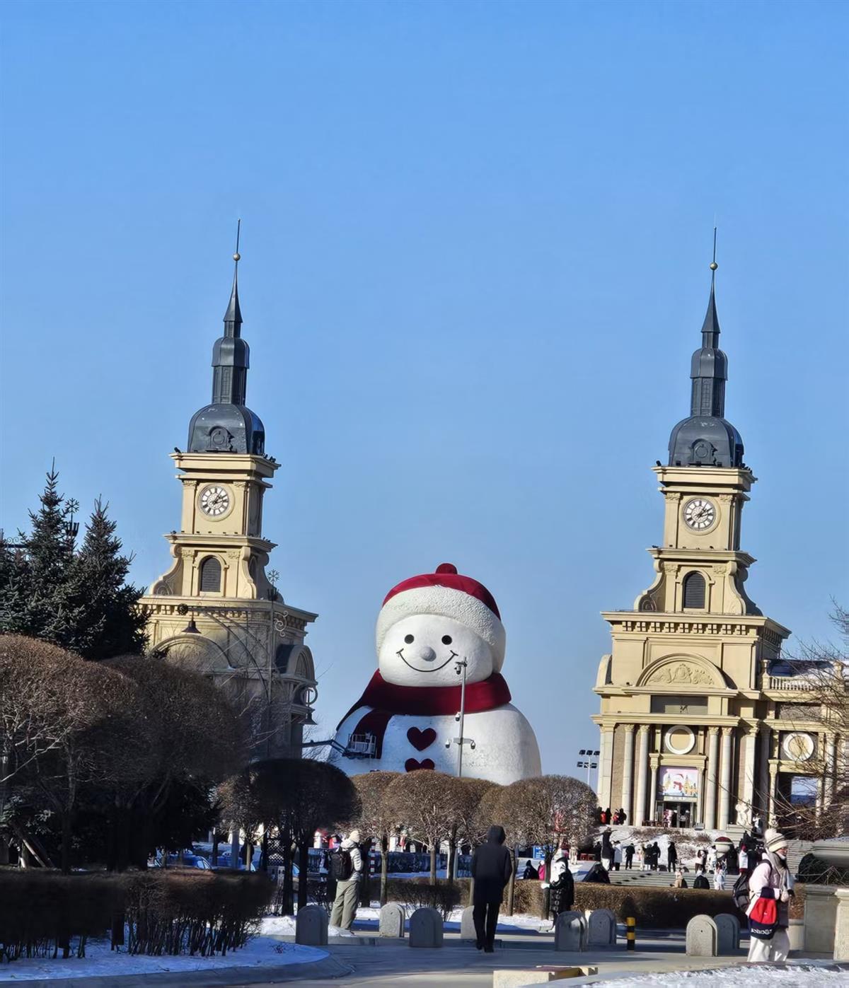 音乐长廊的大雪人是哈尔滨冬季标志性景观之一