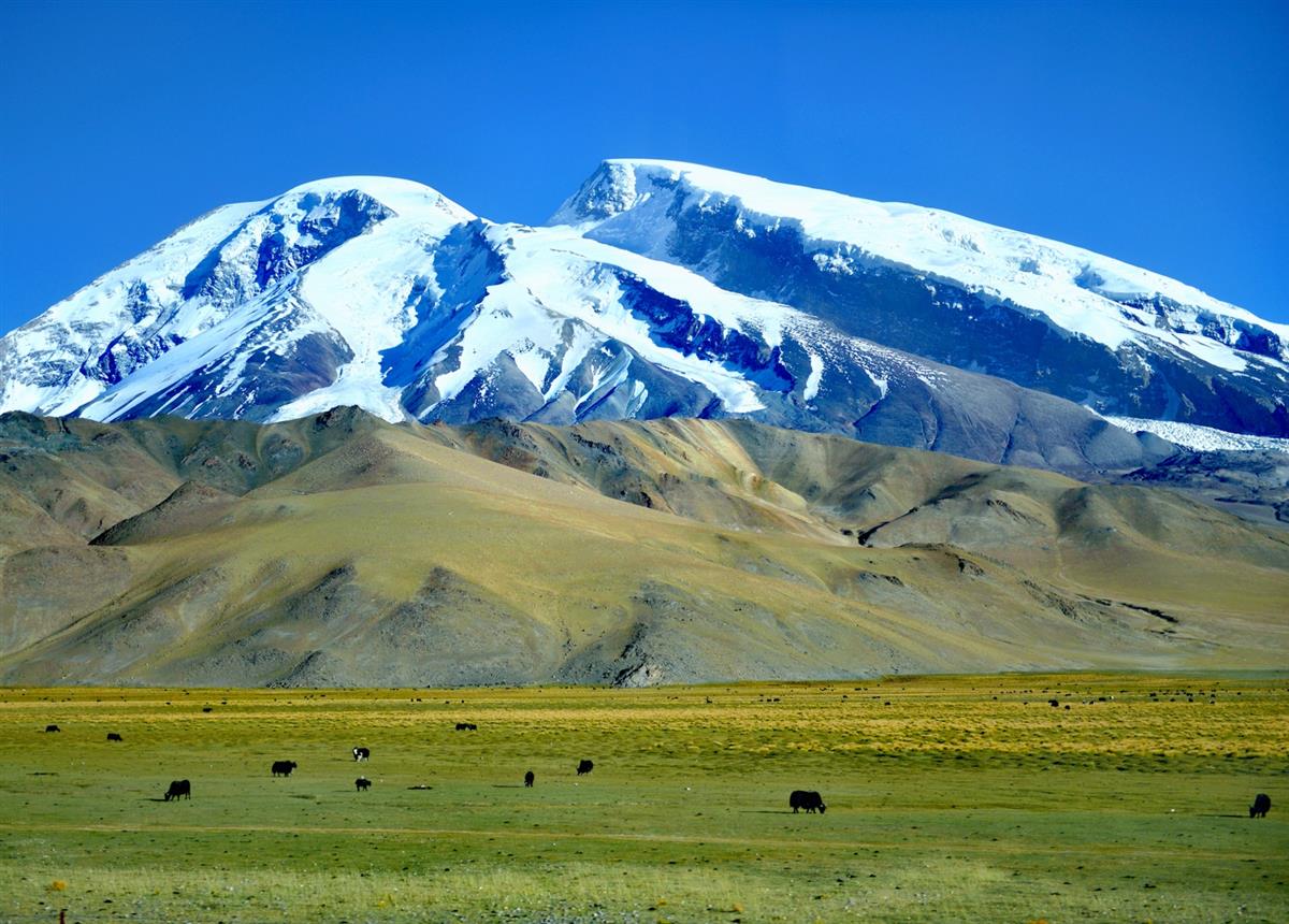 2023年9月16日拍于新疆克孜勒苏柯尔克孜自治州的雪山草地的一个画面。