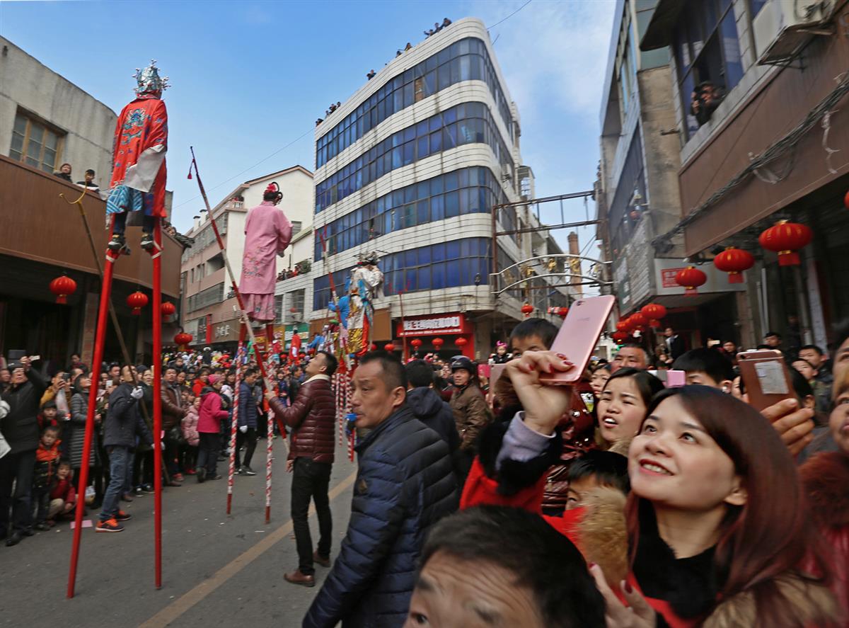 抬故事 走高跷  2017.2.11湖南省汩罗县长乐古镇