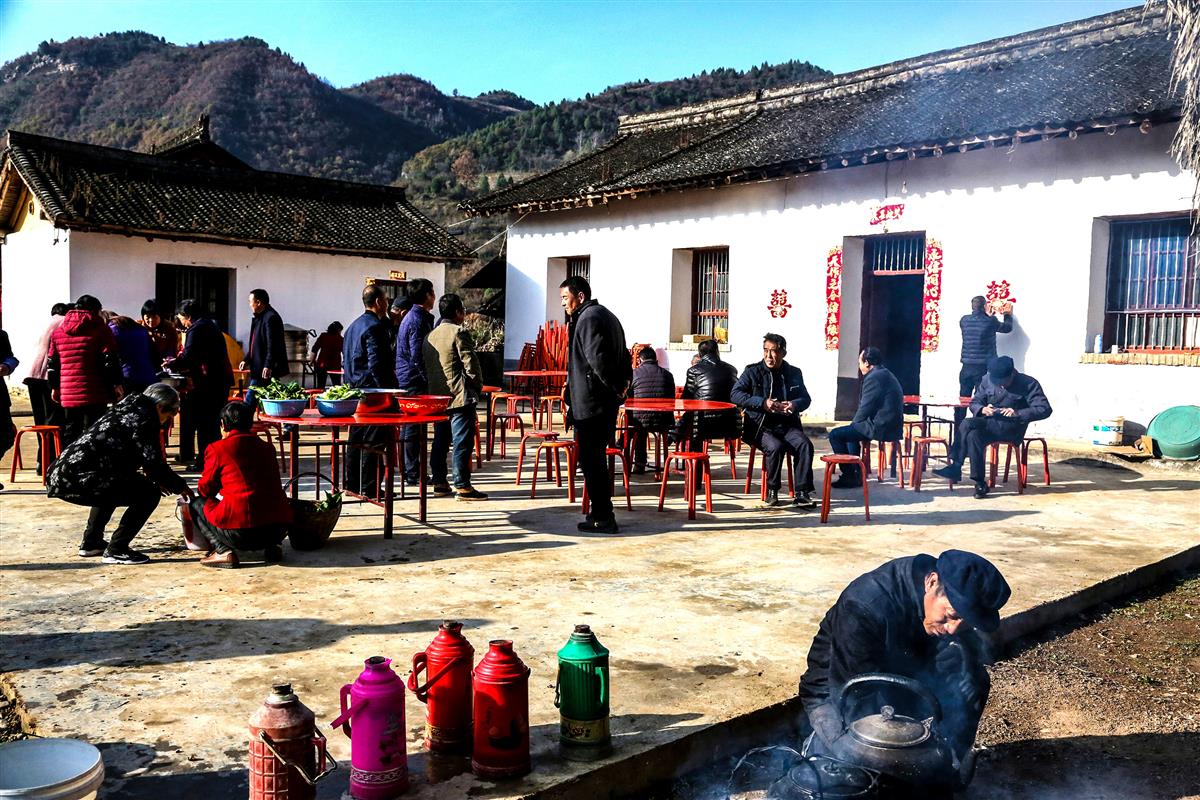 城里打工儿子回家乡准备结婚,乡里乡亲都来帮忙。