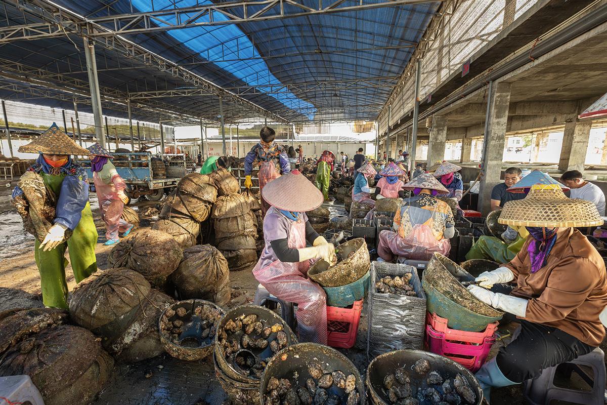 东山岛冬古村忙碌的鲍鱼厂