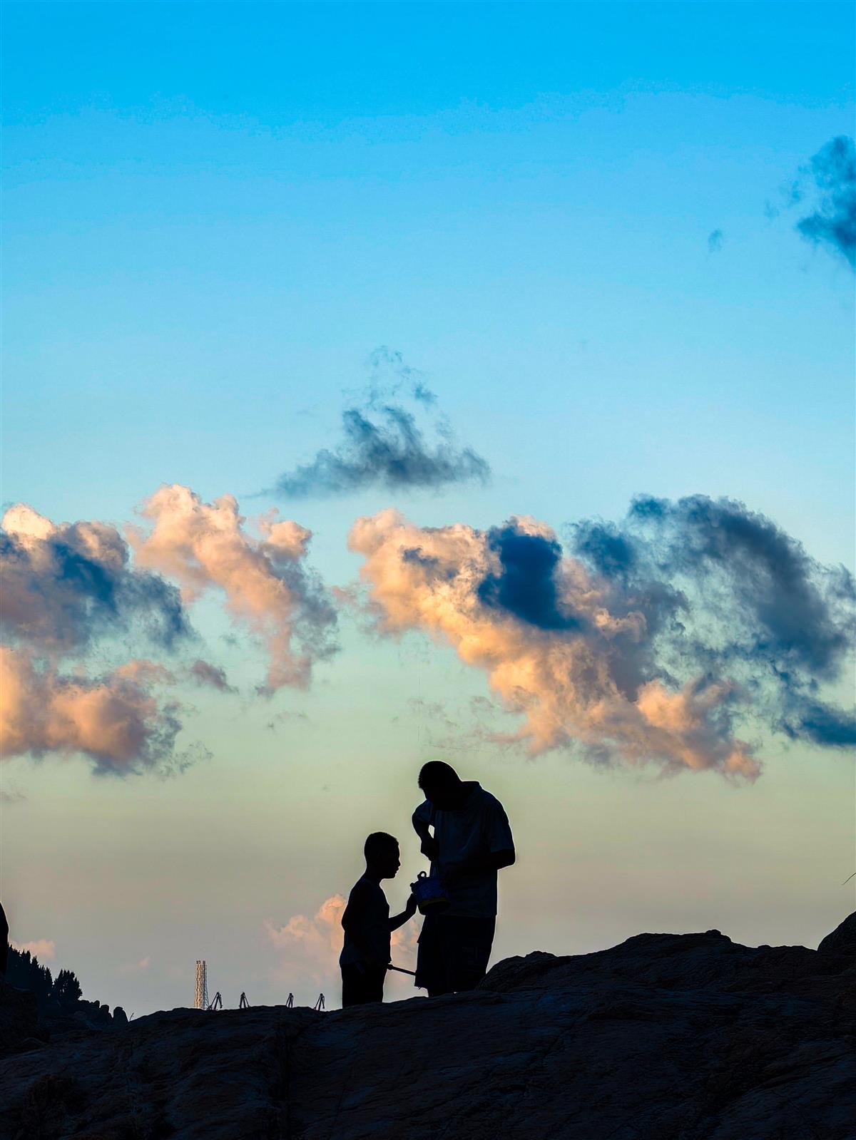 漳州东山岛,在渐晚的天色里,父子二人立于崖石之上,身影被黄昏晕染成深沉的轮廓。绚烂云絮在天际铺展,蓝与橙的色调交织出静谧的氛围。这一刻,是父与子的陪伴时光,是自然与亲情的诗意交融,每一缕云、每一寸光影,都在记录着这属于他们的温暖瞬间。