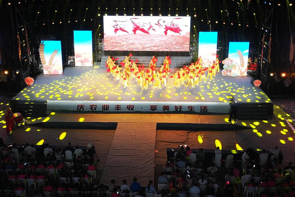 2025年9月28日,夜幕降临,浙江省永康市古山镇库川村的田野旁,一场庆祝《中国农民丰收节》的盛会正式启幕。舞台上,金黄的灯光如稻浪般铺满地面,身着红黄色盛装的村民们踩着鼓点欢快起舞,把丰收的喜悦揉进每一个跳跃的节拍里。