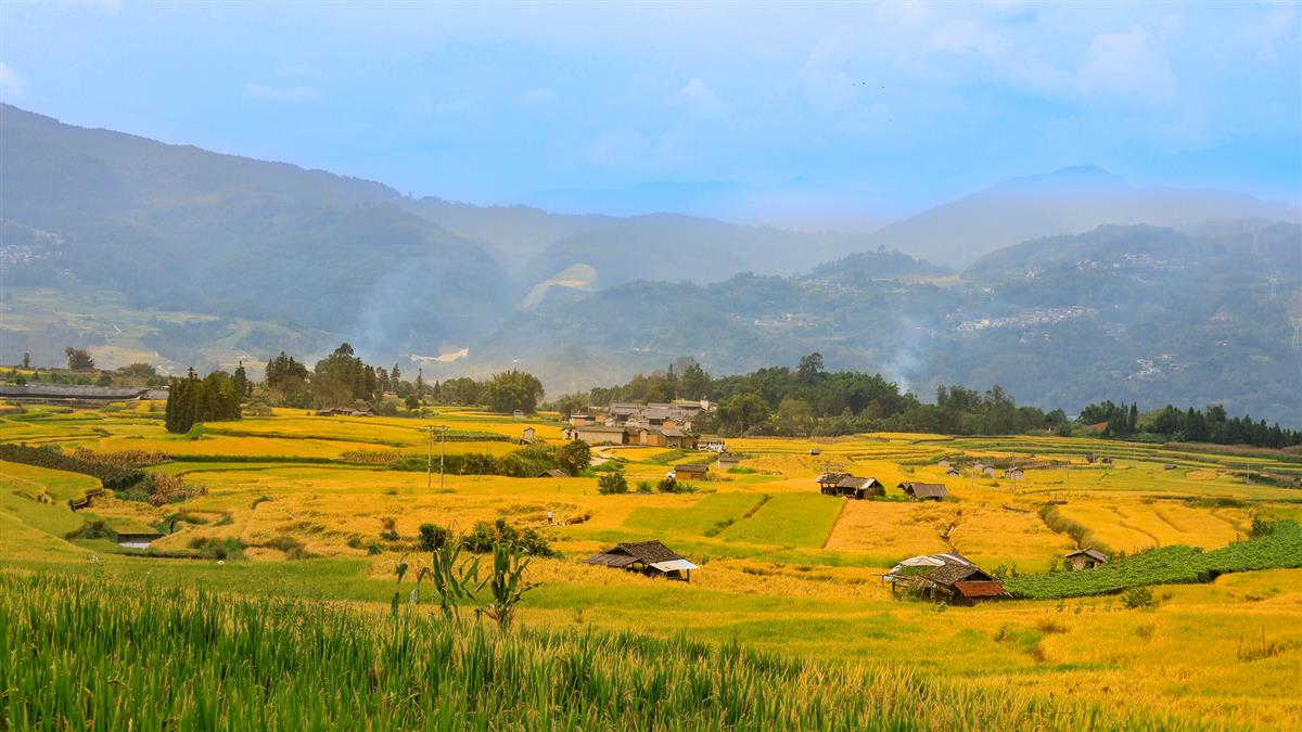 云南省龙陵县龙江乡,以梯田风光而出名。秋季水稻金黄,又是丰收年。