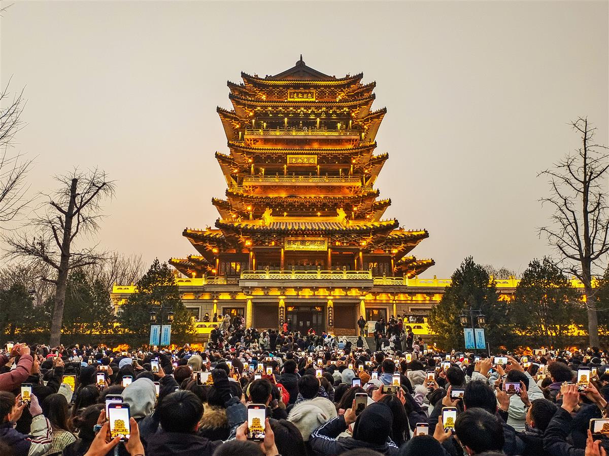 照片拍摄于济南市历下区大明湖景区。承载着 700 年历史底蕴的济南超然楼,如今凭借独特的亮灯景观一跃成为顶流网红打卡点。每当暮色降临,亮灯时刻临近,四面八方的游客便早早聚集在楼前,举着手机、相机翘首以盼。2023 年 12 月 31 日,当灯光骤然亮起,人群中瞬间响起欢呼,快门声此起彼伏,将这一惊艳瞬间定格成难忘的跨年记忆。