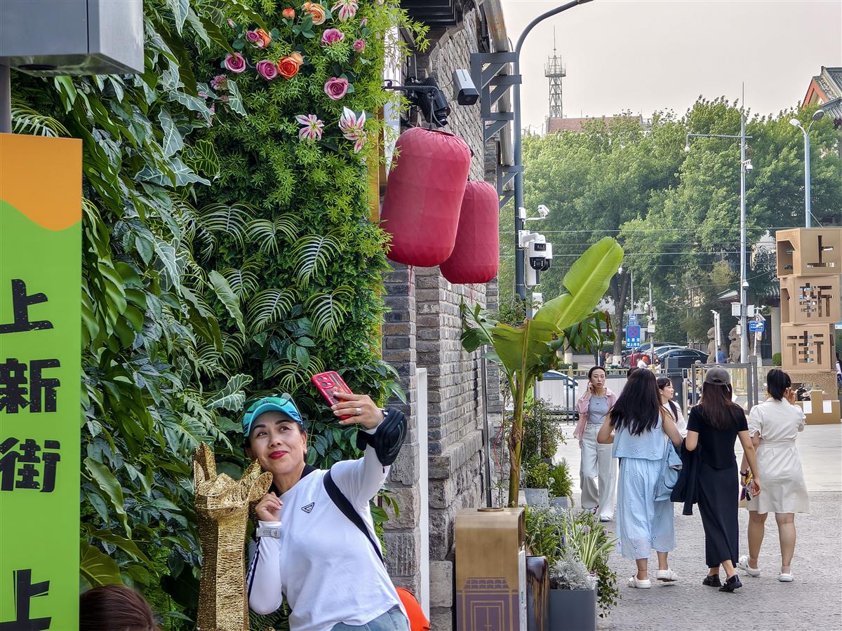 这条承载着百年商埠记忆的济南上新街,在 2025 年五一正式开街焕新,成为热门打卡点。游客倚着金色装饰自拍留影,红灯笼与现代装置相映成趣,行人悠然漫步于新旧交融的街巷中。老建筑的肌理与新潮业态在此碰撞,让这条老街既有岁月沉淀的厚重,又洋溢着鲜活的青春气息。
