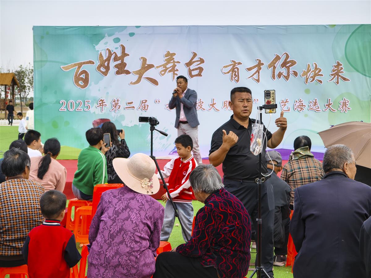 2025年五一期间,以“百姓大舞台,有才你快来”为主题的第二届“水落坡大明星”才艺海选大赛在阳信县水落坡镇刘古良村火热开赛。本次活动冒在挖掘民间艺术人才,丰富群众文化生活,助力多村文化振兴。照片中台上演员的精彩表演和台下手舞足蹈的直播者构成了一幅有趣的画面。
