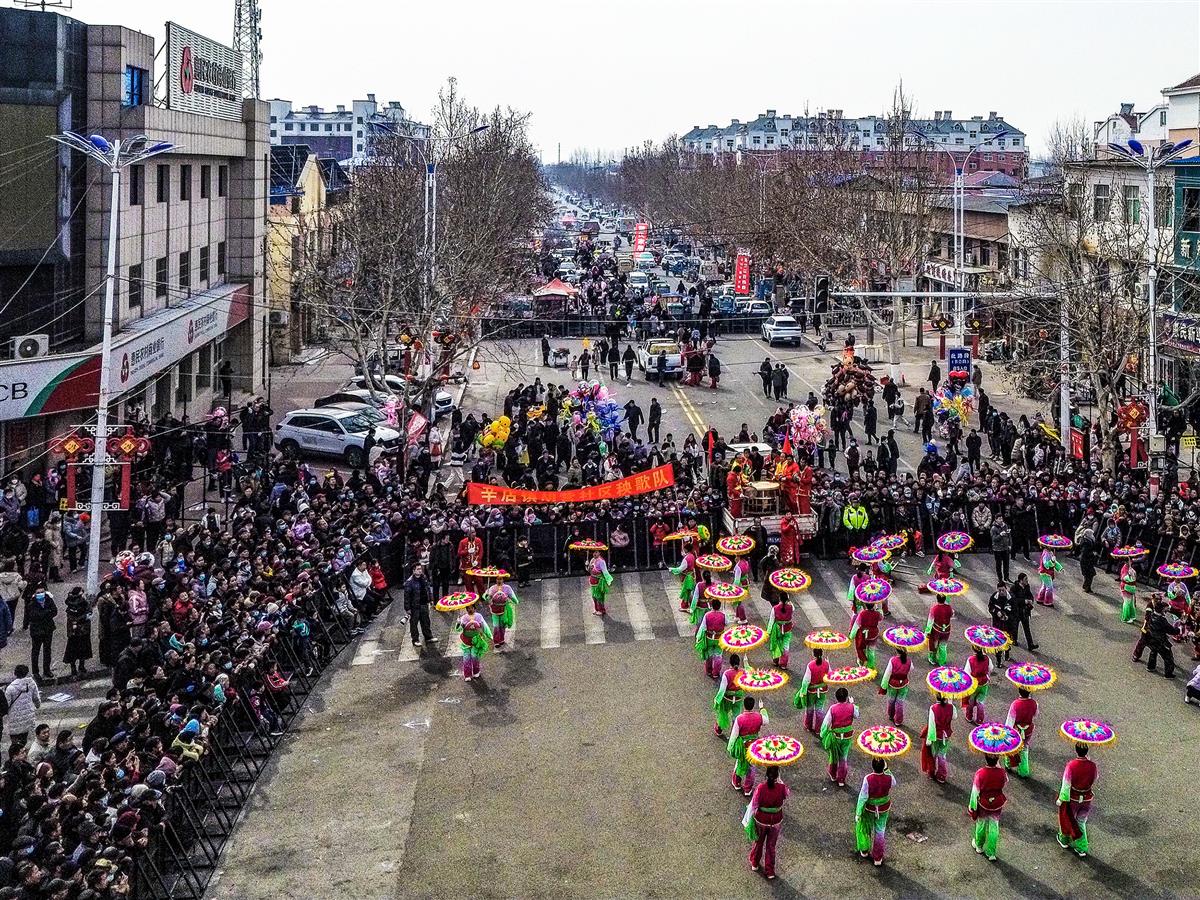 胡集书会始于宋元,至今已有800多年历史,2006年被列入首批国家级非物质文化遗产名录。书会从农历正月十二至正月十六,活动丰富多彩,这是正月十四在胡集镇书会路举办的民间秧歌展演活动。