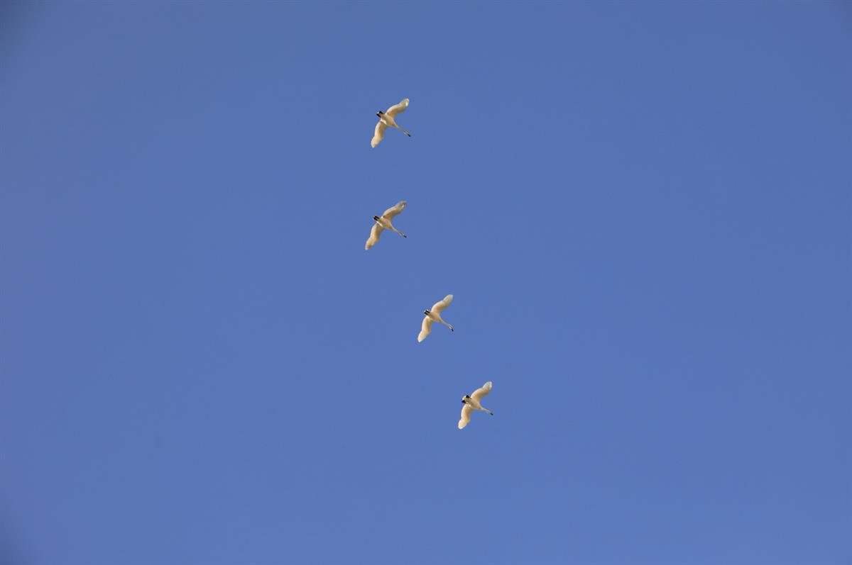 找到了古诗词的意境,一队整齐的白鹭直冲向蔚蓝的天空。
