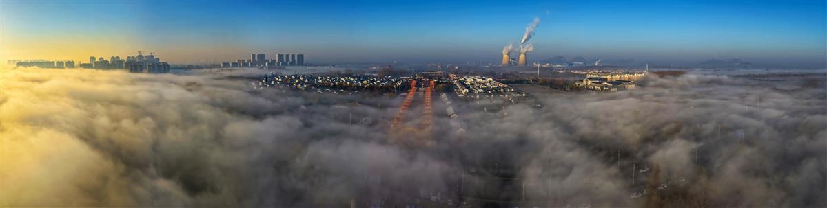 《云上浮城记》——整座城市像被神仙随手撒在云絮上的积木,近处青瓦民居是散落的翡翠,远处玻璃高楼则成了水晶柱。