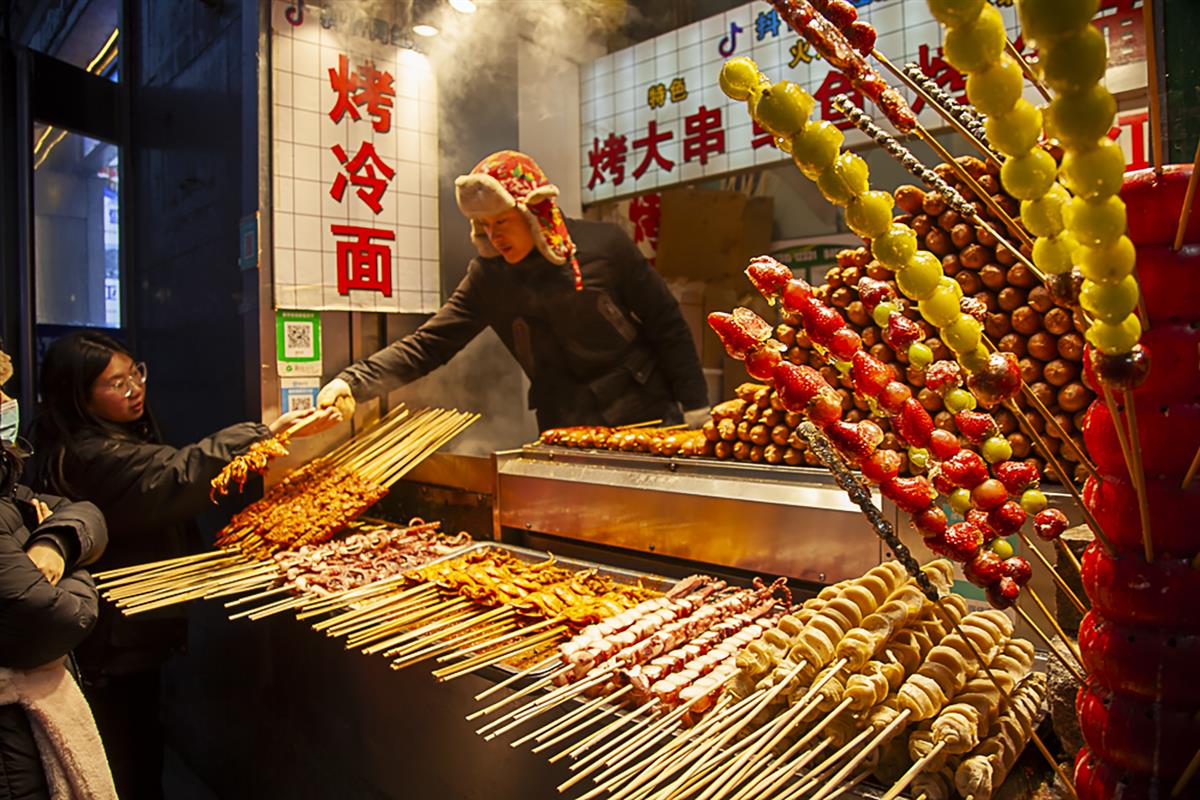 冬夜的街头,镜头定格在摊主与食客两只手传递一串带着滚烫温度烤串的瞬间,这不仅是食物的流转,更是寒夜里人与人之间最朴素的联结——在烟火升腾处,市井的温暖与生活的热望,稳稳传递。