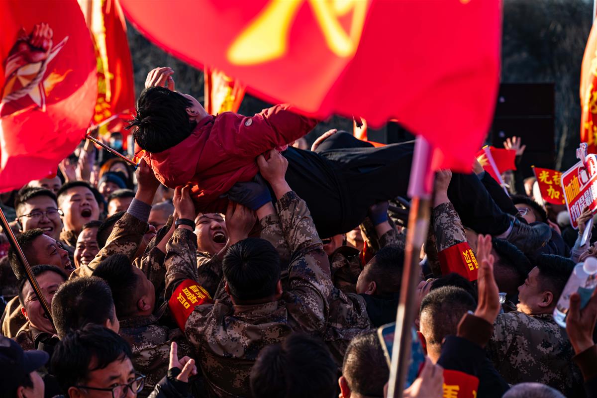 2026年1月12日上午,河北省石家庄市平山县光禄山景区,在平山县政府组织的“平山红拔河超级联赛”中,平山镇光禄队战胜古月镇豆腐队,闯入四强,图为光禄队胜利后队员们兴奋的将领队抛起来庆祝胜利。这一赛事是该县以赛为媒,以文塑旅,以旅兴商,吸引大量游客驻足观赛、打卡互动,实现“以赛促游”,带动该县景区人气持续攀升。