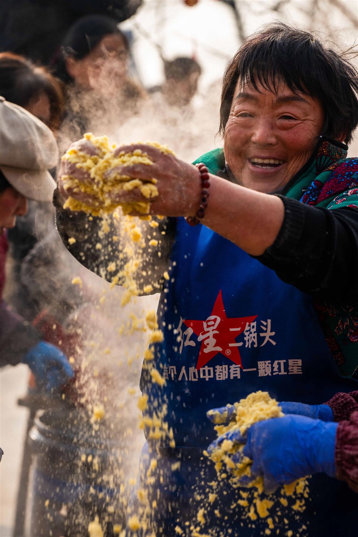 2026年1月26日,河北省平山县宅北乡碾盘沟村,这里是抗战时期《晋察冀画报》的创刊地,也是沙飞等红色摄影家战斗过的地方,早上起来乡亲们自办了热闹的年味节,李妈妈正在高兴的搓面做年糕,幸福的年味儿洋溢在她的脸上